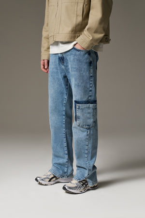 MULTI POCKET WASHED JEAN - BLUE WASH