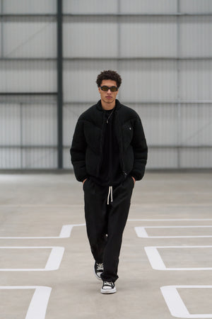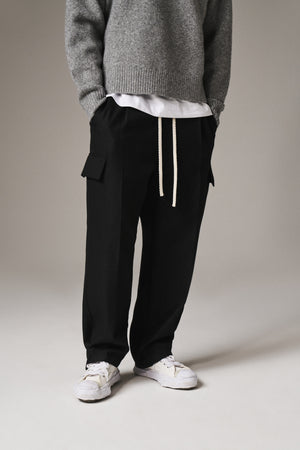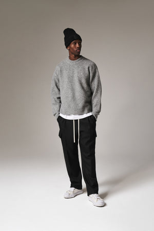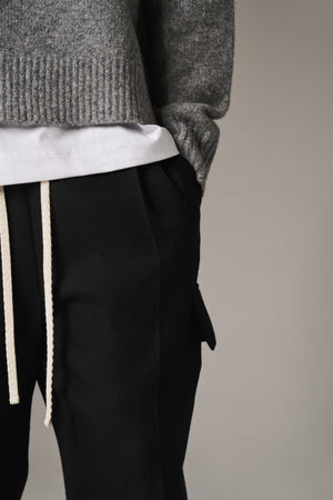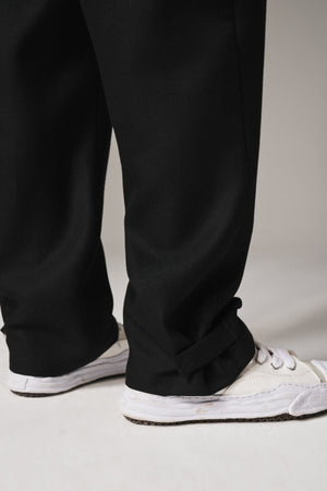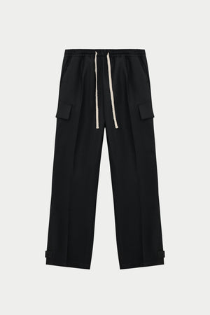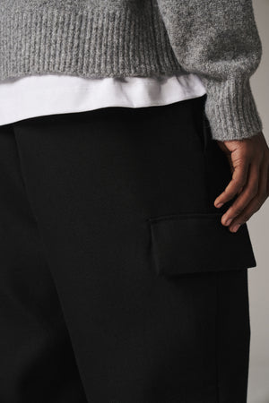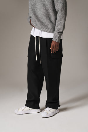 PLEATED WIDE LEG WOOL BLEND TROUSER - BLACK