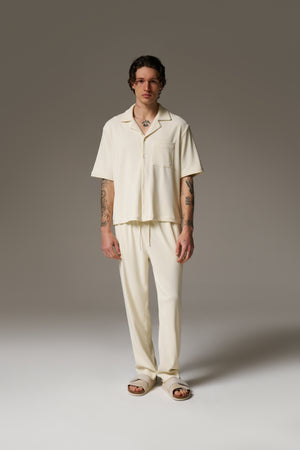 - Tonal flat stitch embroidered emblem below back welt pocket
