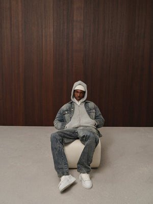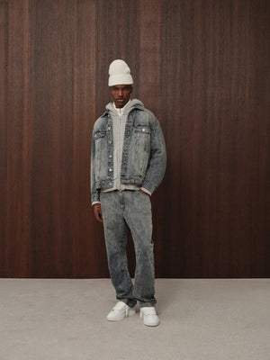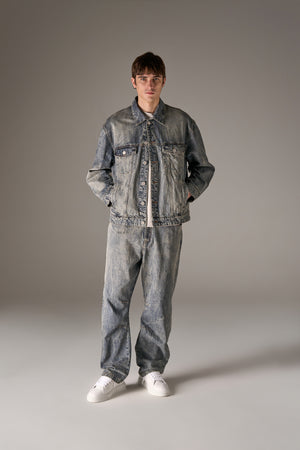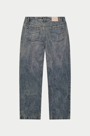 VINTAGE WASH DENIM BARREL LEG JEANS - BLUE WASH