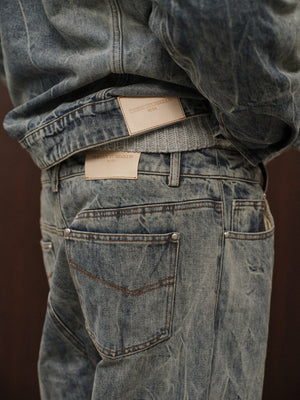 VINTAGE WASH DENIM BARREL LEG JEANS