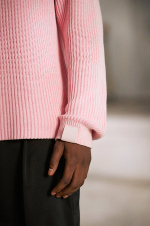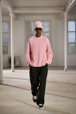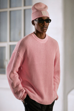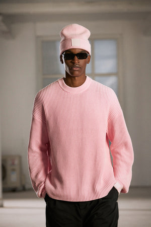 HEAVY WASHED RIBBED KNIT CREW - PINK
