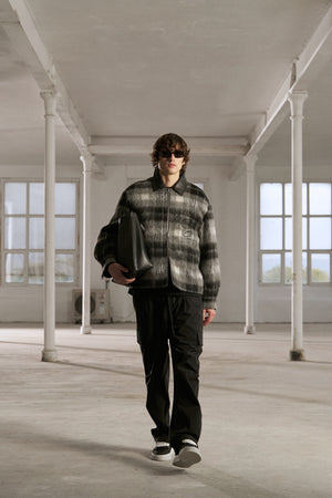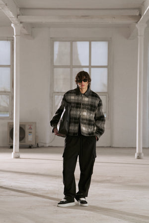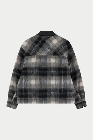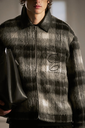 BRUSHED CHECK CONTRAST COLLAR JACKET - BLACK