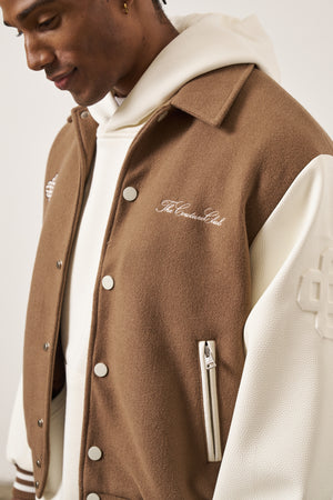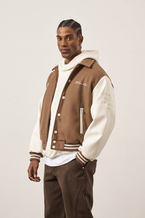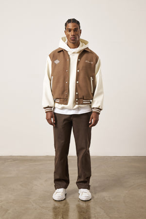 EMBLEM CHENILLE VARSITY JACKET - BROWN