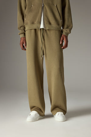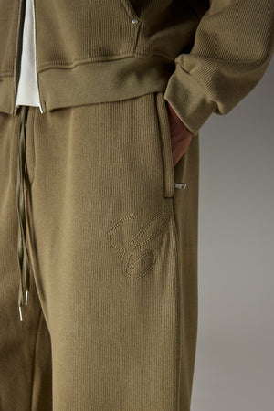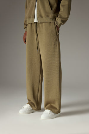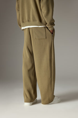 KNIT CONTRAST DRAWCORDS RELAXED JOGGERS - KHAKI