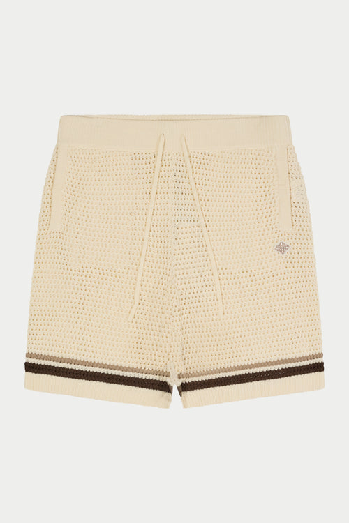 CROCHET KNITTED STRIPE SHORTS - OFF WHITE