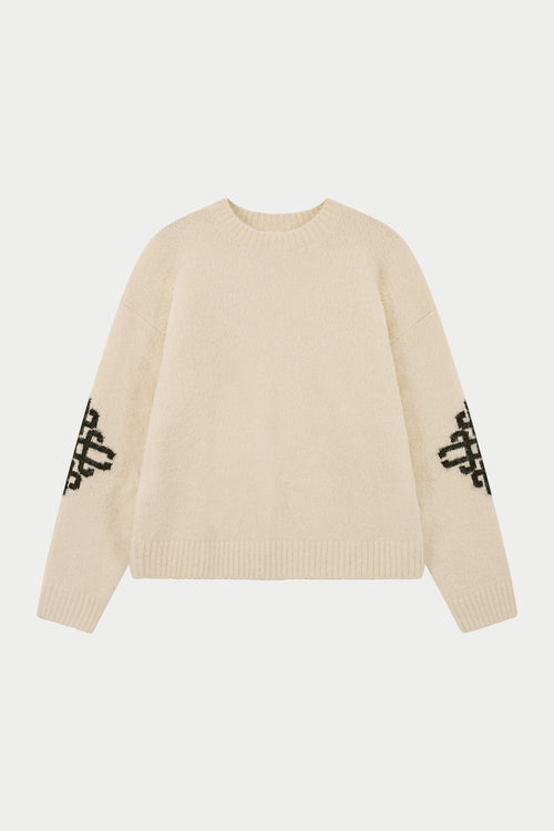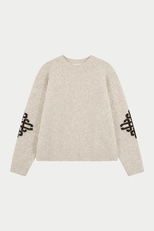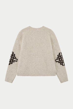 BRUSHED EMBLEM SLEEVE KNITTED CREW - BEIGE