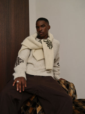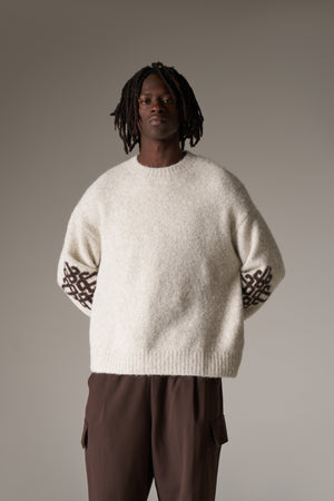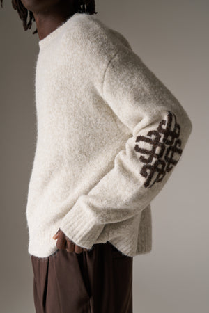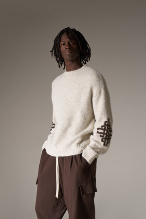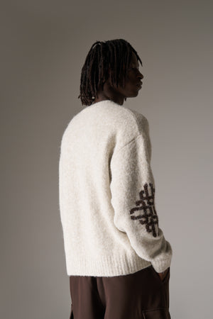 BRUSHED EMBLEM SLEEVE KNITTED CREW
