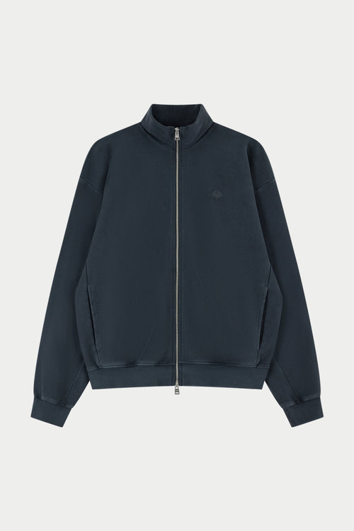 HEAVYWEIGHT WASHED RIBBED ZIP THROUGH FUNNEL NECK