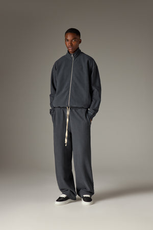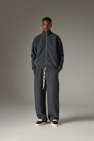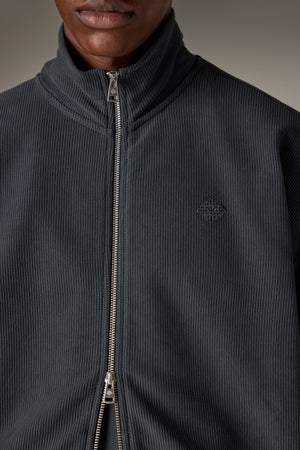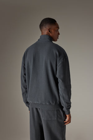HEAVYWEIGHT WASHED RIBBED ZIP THROUGH FUNNEL NECK - WASHED BLACK