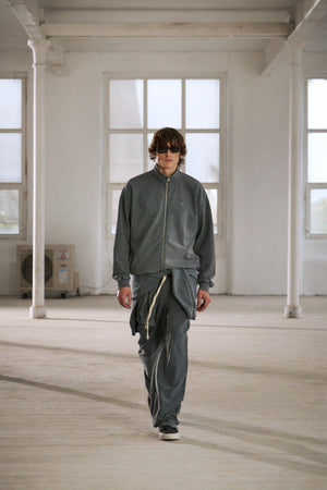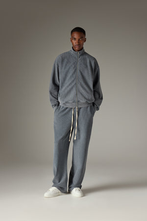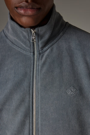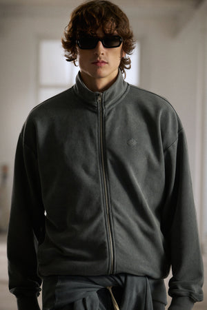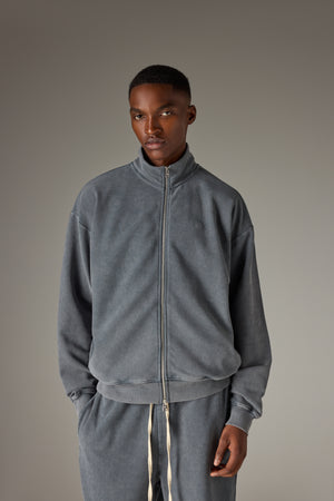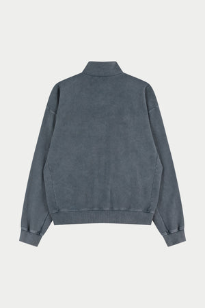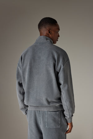 HEAVYWEIGHT WASHED RIBBED ZIP THROUGH FUNNEL NECK - GREY