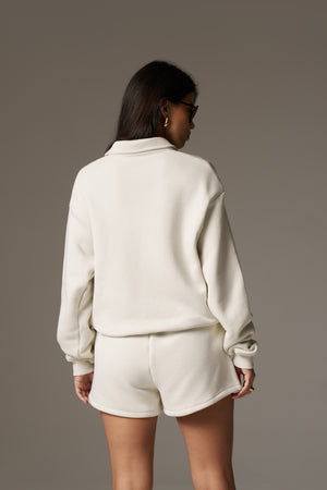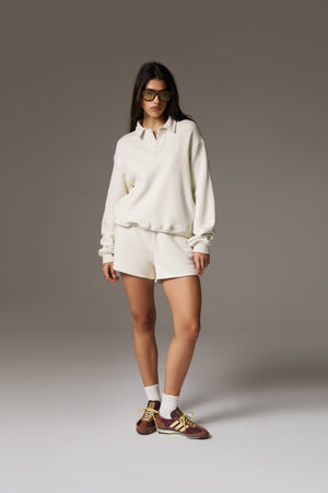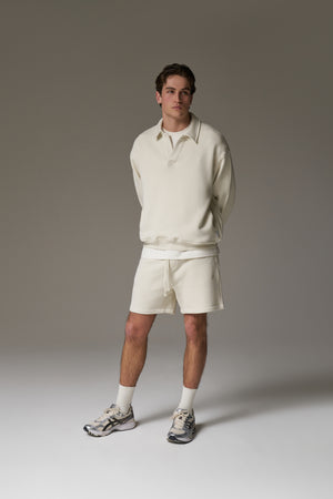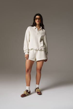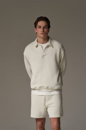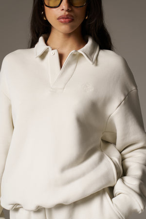 LAUNDERED CLASSICS POLO SWEATSHIRT - ECRU