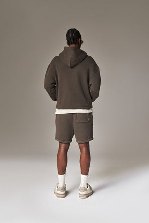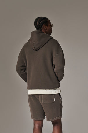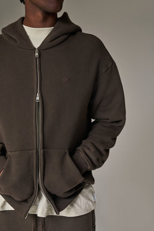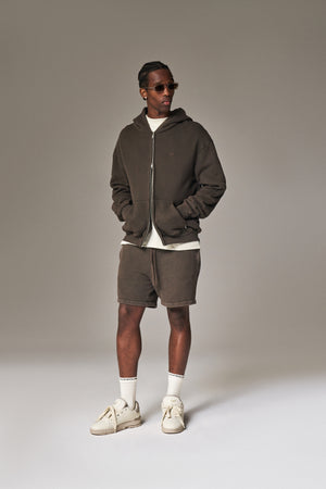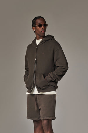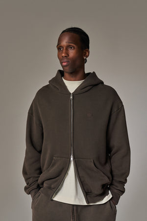 LAUNDERED CLASSICS ZIP THROUGH HOODIE - WASHED BROWN