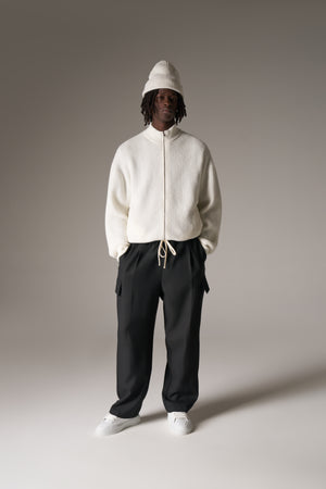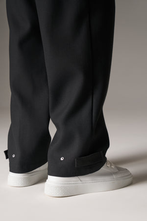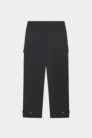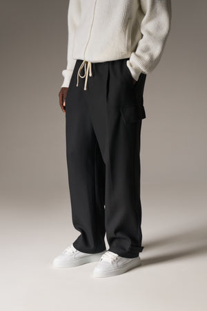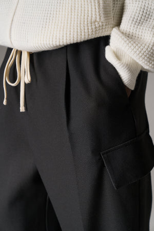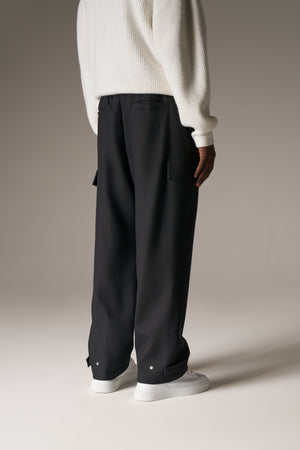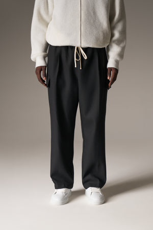 PLEATED WIDE LEG WOOL BLEND TROUSERS - BLACK