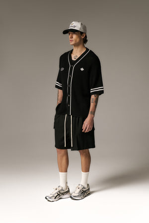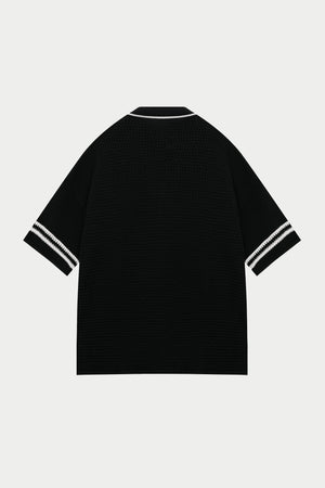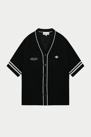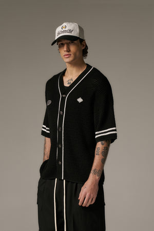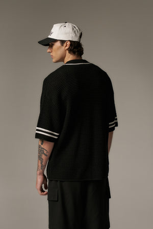 CROCHET KNITTED BASEBALL SHIRT - BLACK