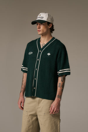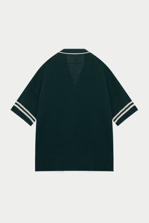 CROCHET KNITTED BASEBALL SHIRT - GREEN