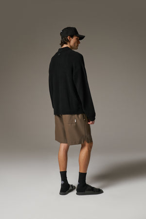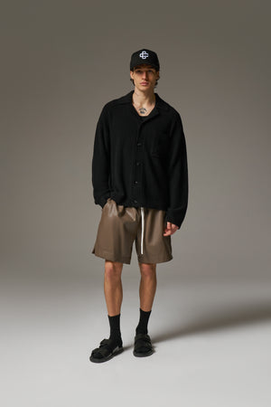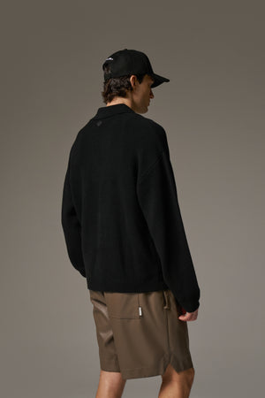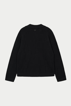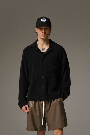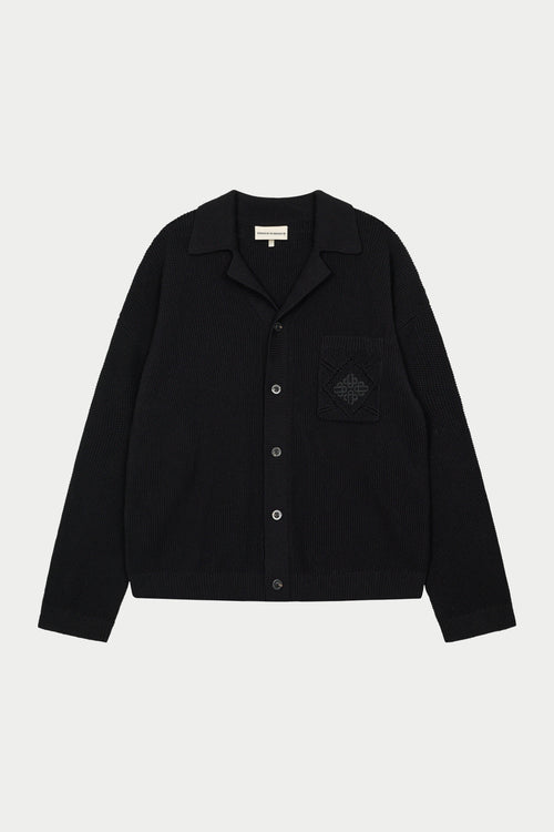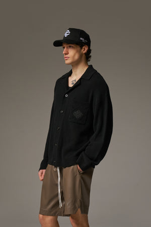 CROCHET KNITTED EMBLEM POCKET SHIRT - BLACK