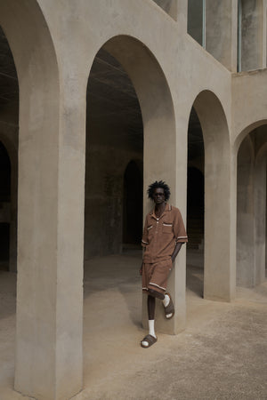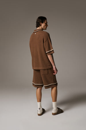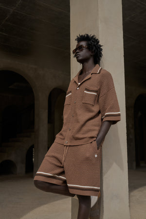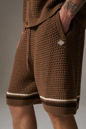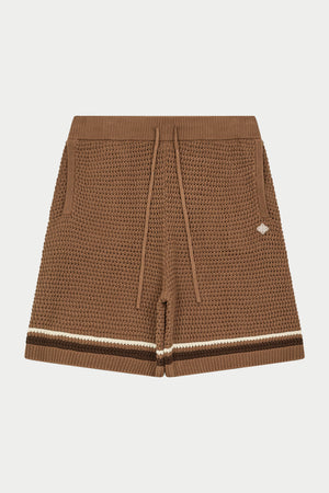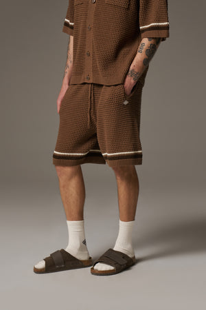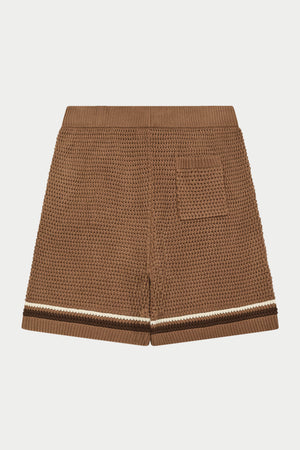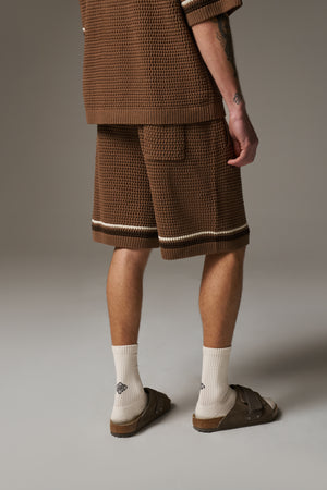 CROCHET KNITTED STRIPE SHORTS - BROWN