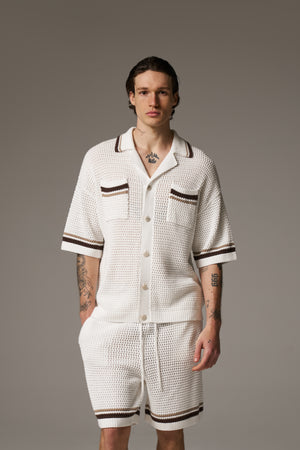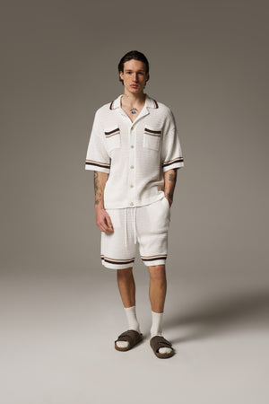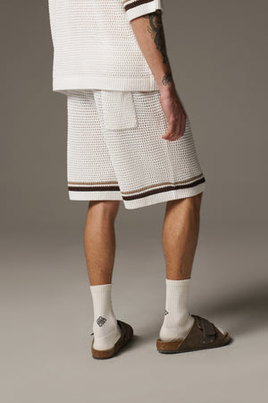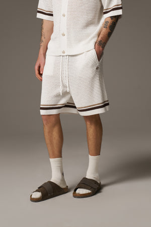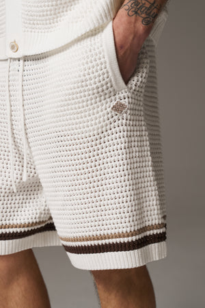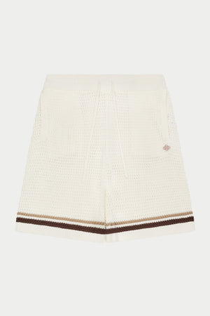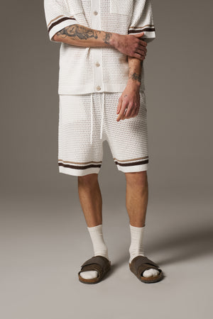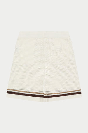 CROCHET KNITTED STRIPE SHORTS - WHITE/BROWN