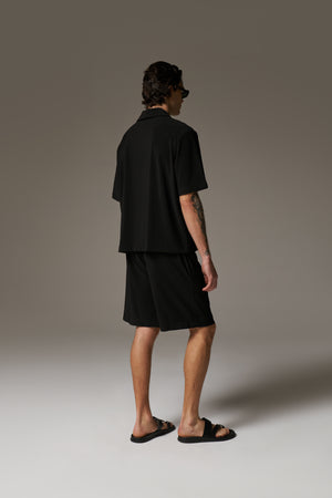 - Tonal flat stitch embroidered emblem below back welt pocket