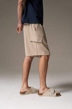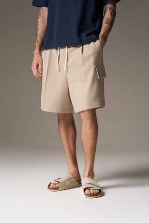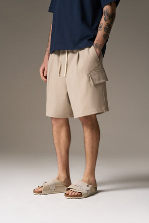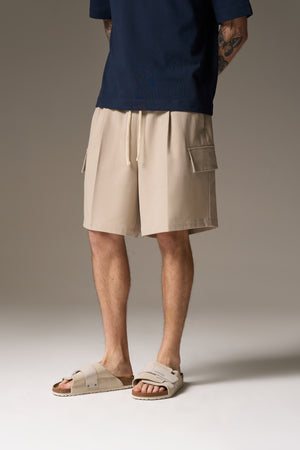 WIDE LEG SIDE POCKET SHORTS - BEIGE