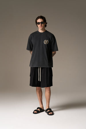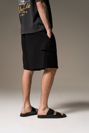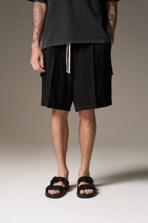 WIDE LEG SIDE POCKET SHORTS - BLACK