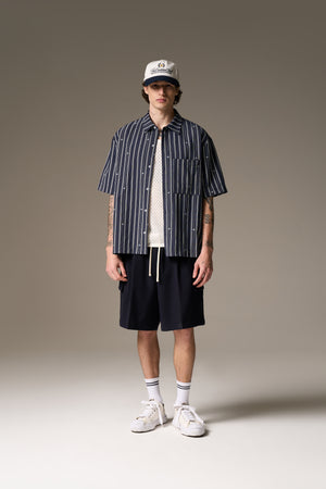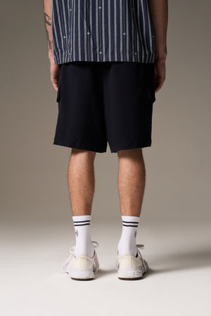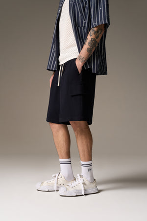 WIDE LEG SIDE POCKET SHORTS - NAVY
