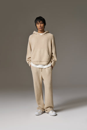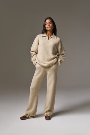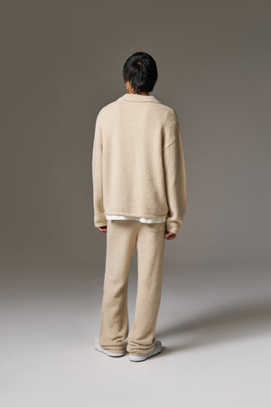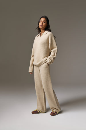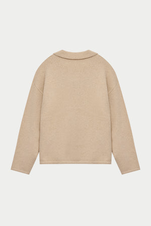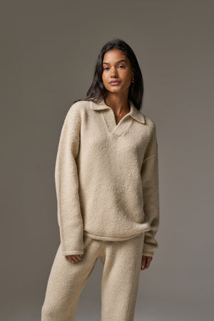 BOUCLE KNIT LONG SLEEVE POLO - STONE