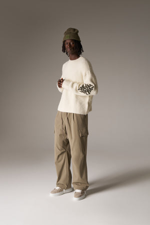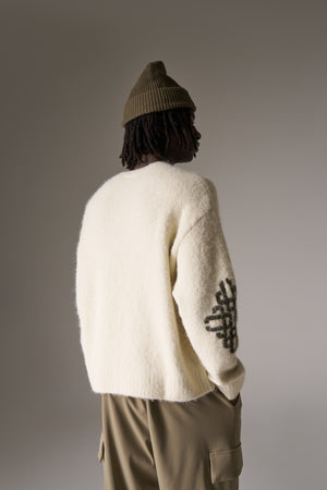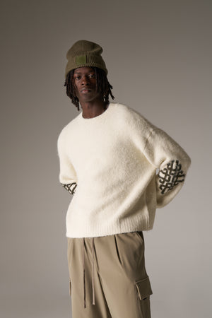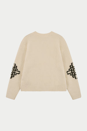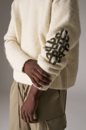 BRUSHED EMBLEM SLEEVE KNITTED CREW - OFF WHITE