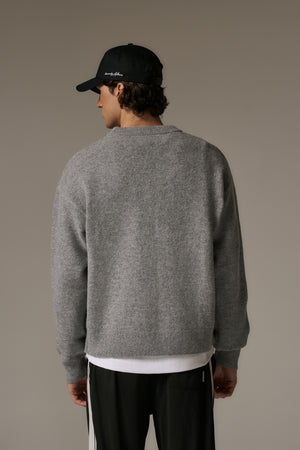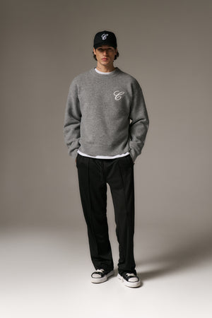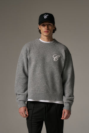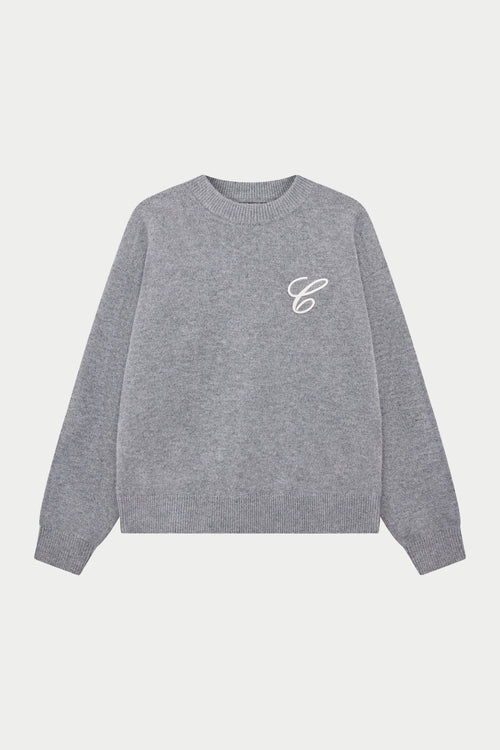 C EMBROIDERY KNITTED CREW - GREY MARL