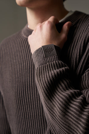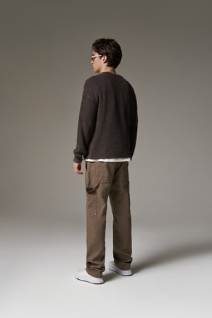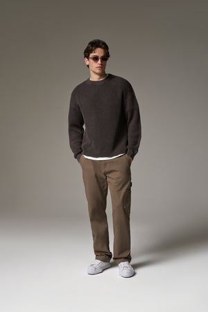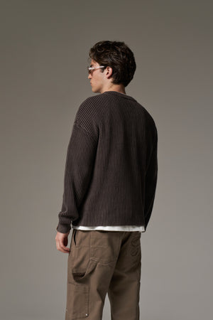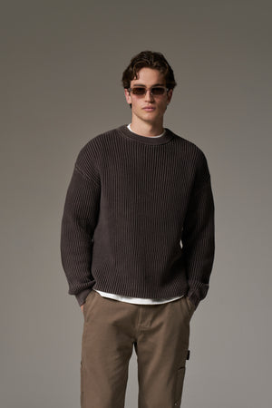 HEAVY WASHED RIBBED KNIT CREW - BROWN