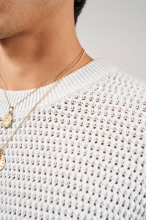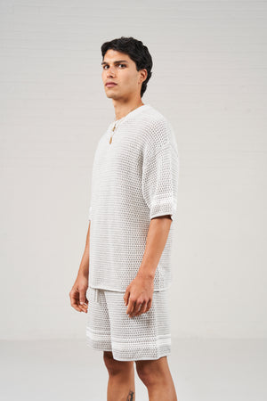 CROCHET KNITTED CONTRAST STRIPE T-SHIRT