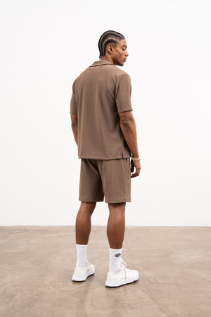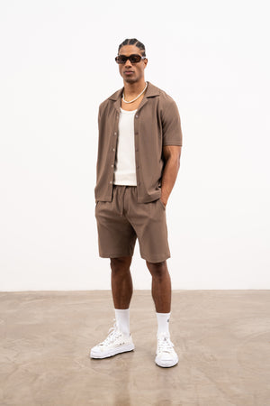 RIB TEXTURED SHORTS - BROWN