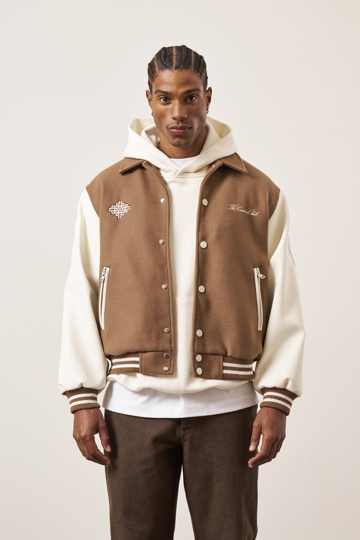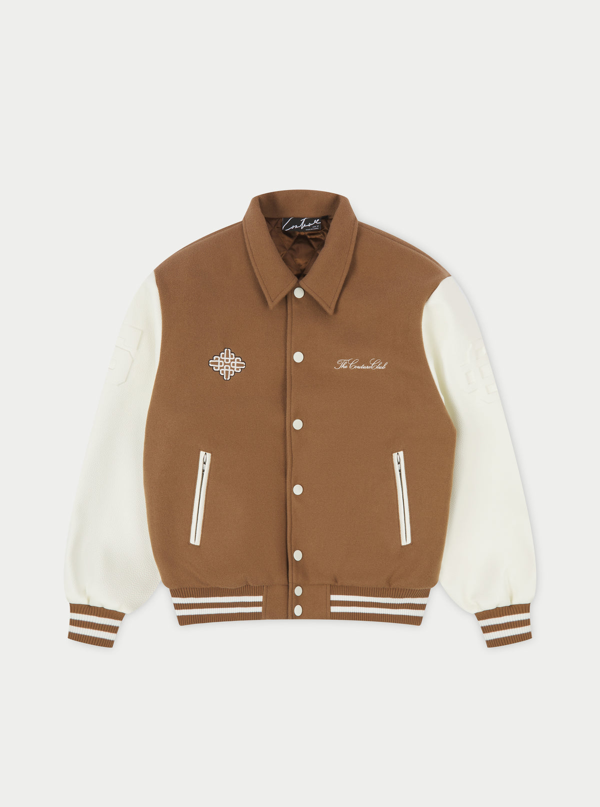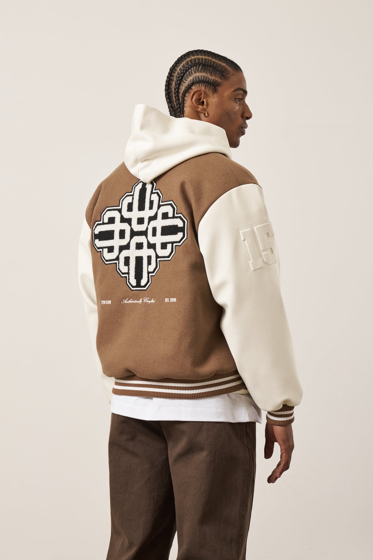 EMBLEM CHENILLE VARSITY JACKET - BROWN