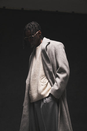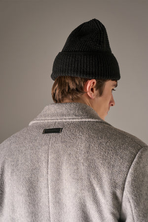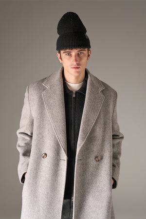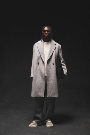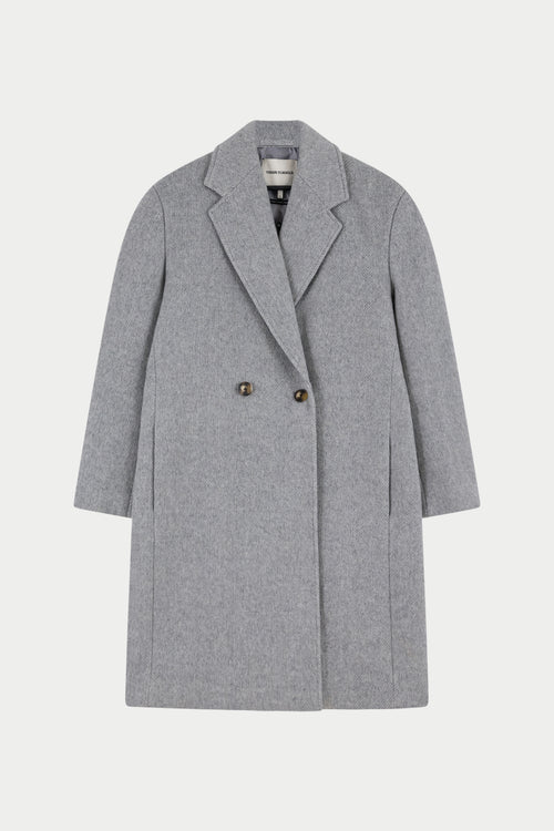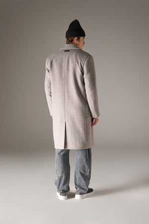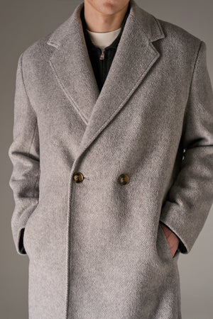 HERRINGBONE WOOL LONGLINE DUSTER COAT - GREY