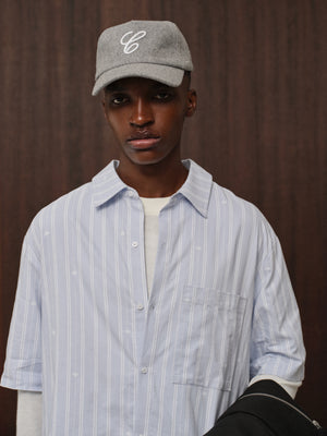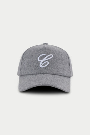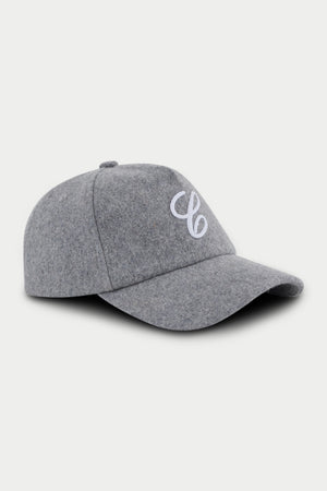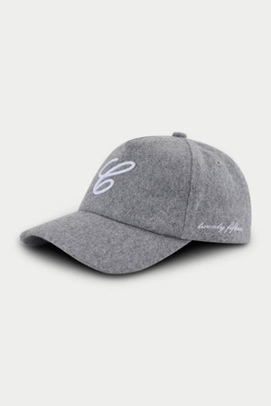 WOOL SCRIPT EMBROIDERED CAP - GREY