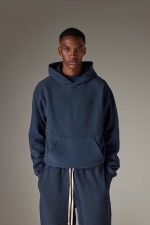 HEAVYWEIGHT WASHED RIBBED HOODIE - NAVY