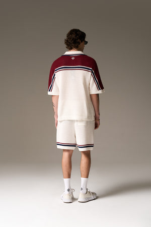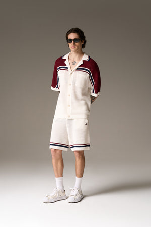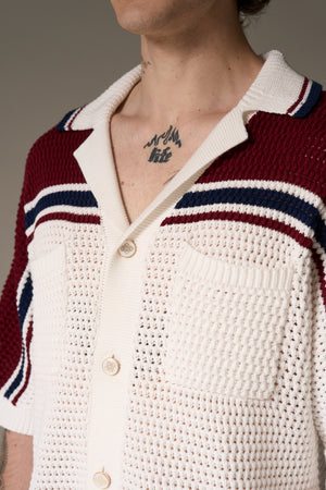 COLOUR BLOCK KNITTED STRIPE SHIRT - BURGUNDY