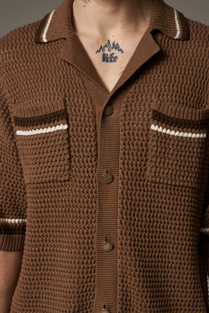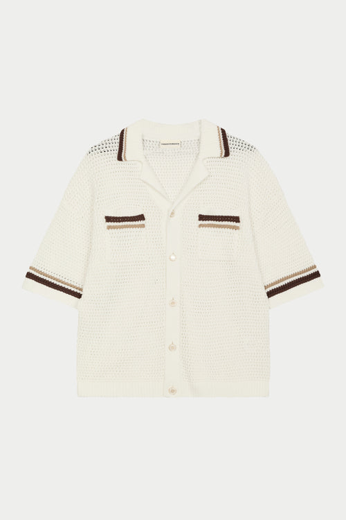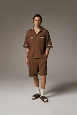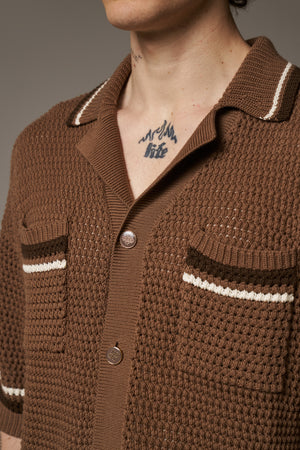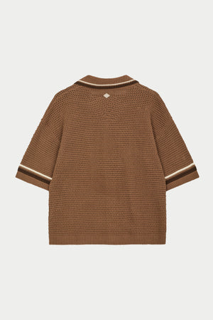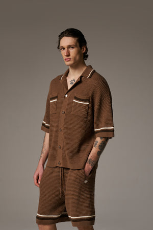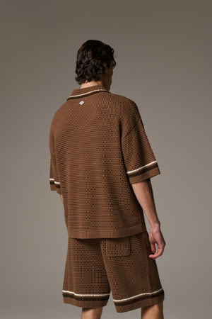 CROCHET KNITTED STRIPE SHIRT - BROWN