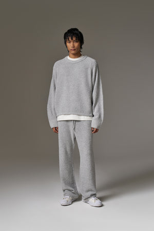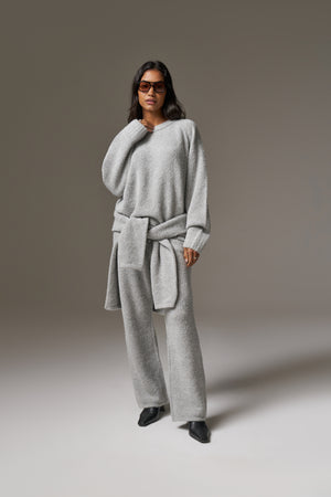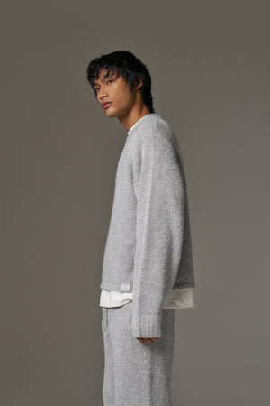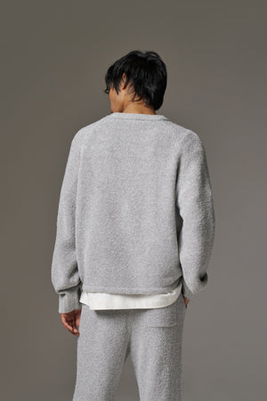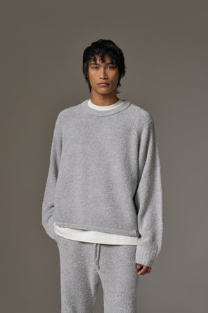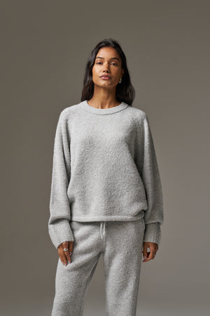 BOUCLE KNIT RAGLAN CREW - GREY MARL
