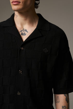 CHECKERBOARD KNITTED SHIRT - BLACK