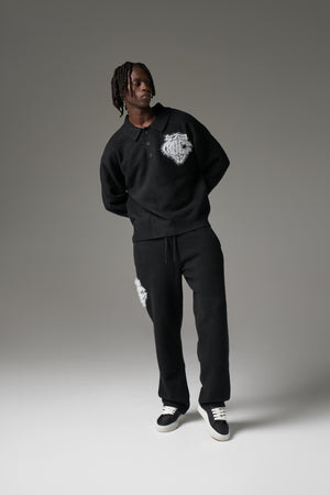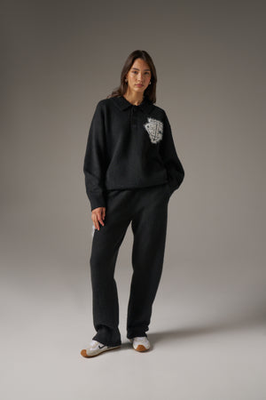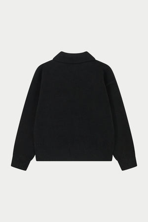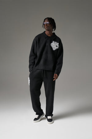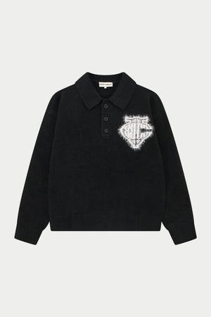 MONOGRAM FLUFFY KNIT POLO - BLACK