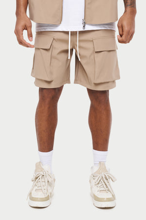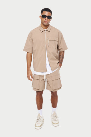 HEAVYWEIGHT ZIP CARGO SHORTS - BEIGE