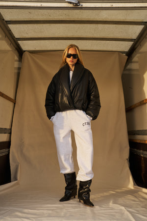 OVERSIZED COLLAR FAUX LEATHER PUFFER COAT