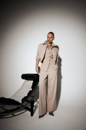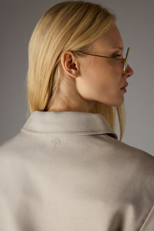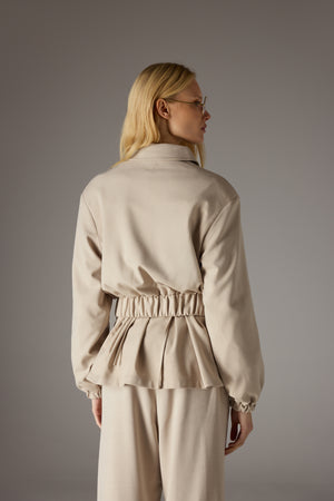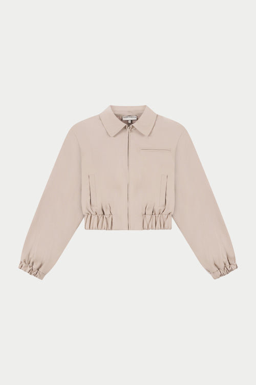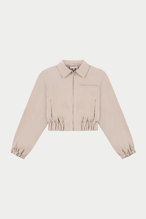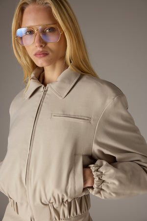 TAILORED SHOULDER PADDED BOMBER JACKET - BEIGE