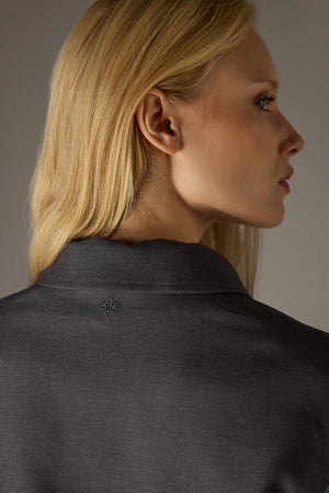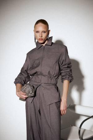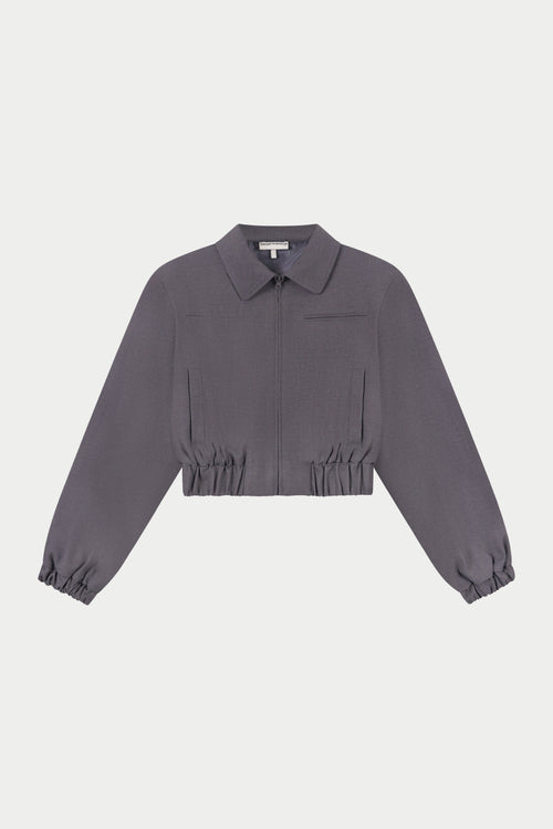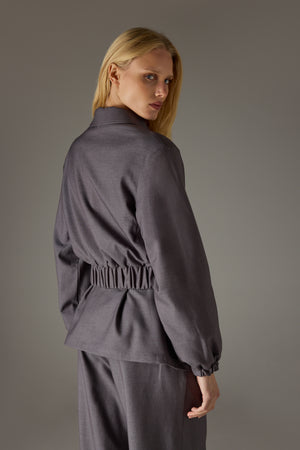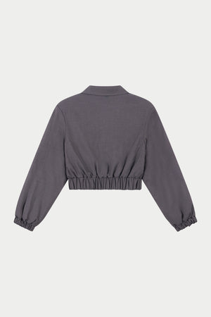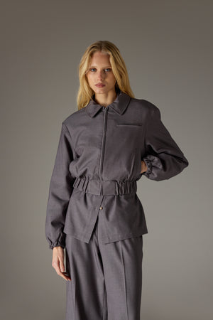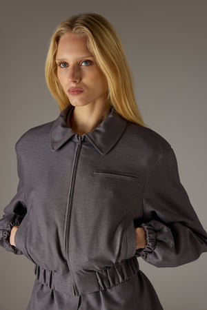TAILORED SHOULDER PADDED BOMBER JACKET - GREY