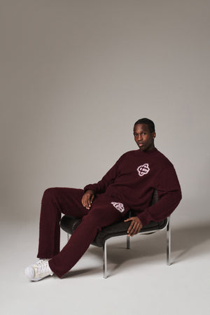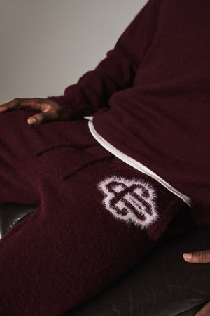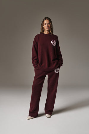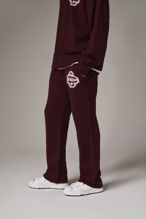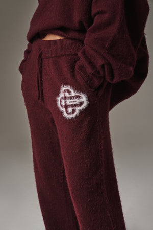 FLUFFY EMBLEM KNITTED JOGGERS - BURGUNDY