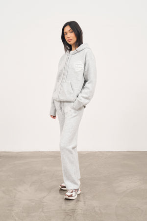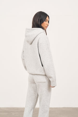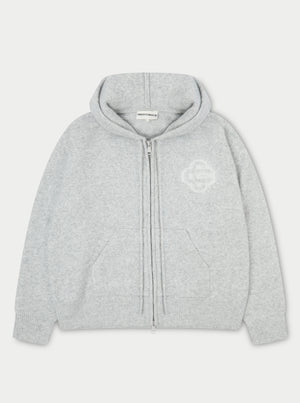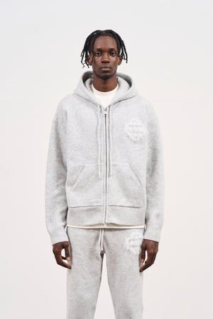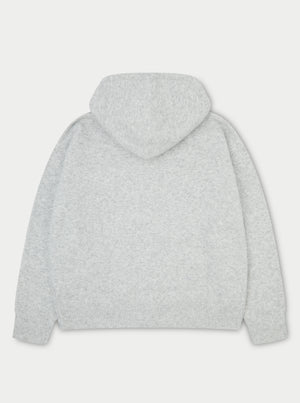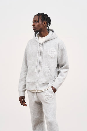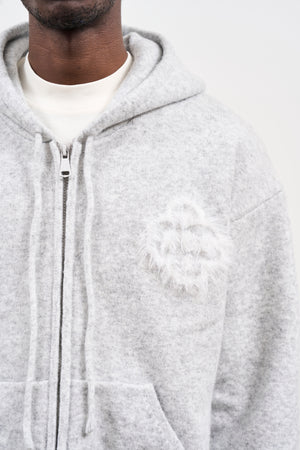 FLUFFY EMBLEM ZIP THROUGH KNITTED HOODIE - GREY MARL