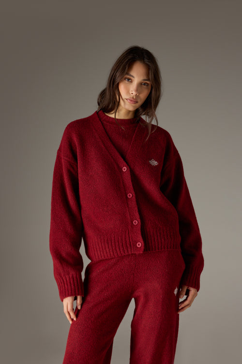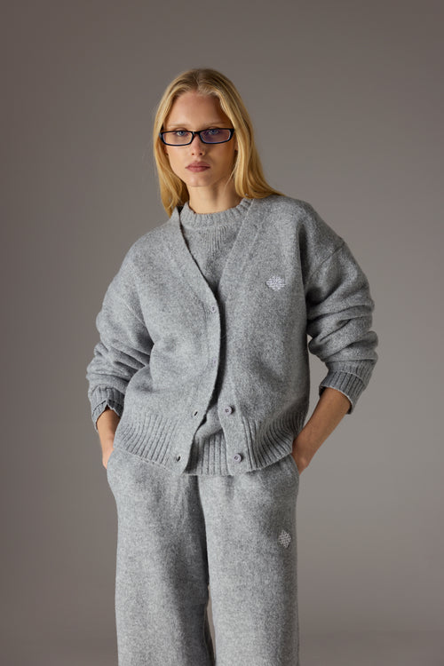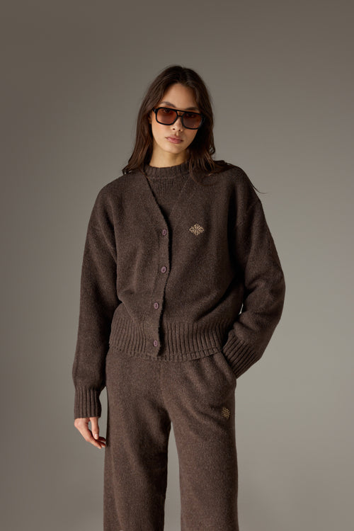 FLUFFY KNITTED EMBLEM EMBROIDERED CARDIGAN