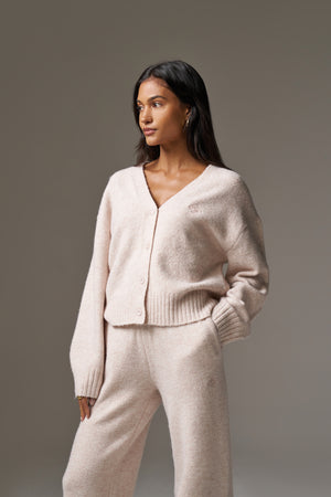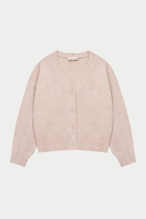 FLUFFY KNITTED EMBLEM EMBROIDERED CARDIGAN - PINK